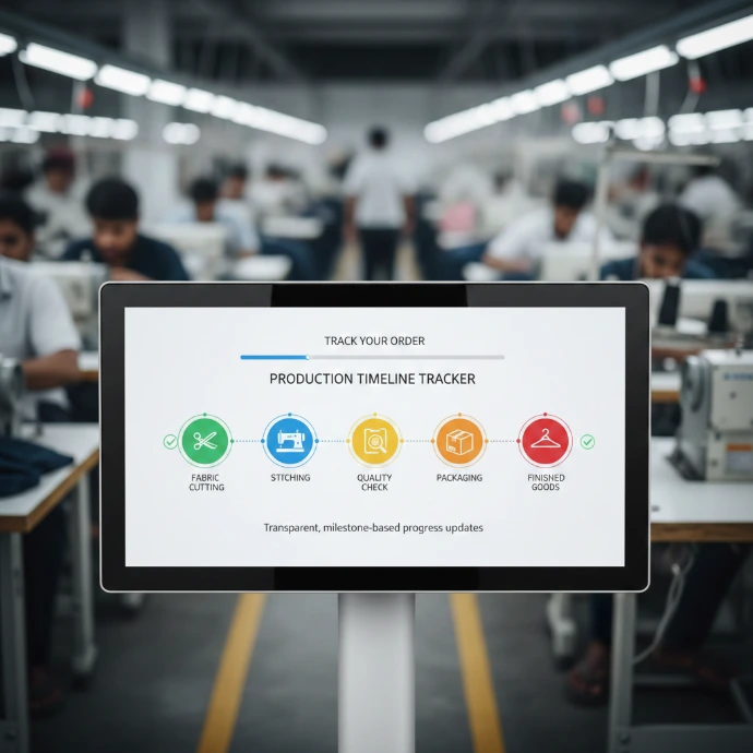 Wir verwalten die ethische Herstellung von der Stoffbeschaffung bis zu den fertigen Produkten. Jede Charge durchläuft eine strenge 3-stufige Qualitätskontrolle und erhält Ihre individuellen Etiketten, Tags und Verpackungen.